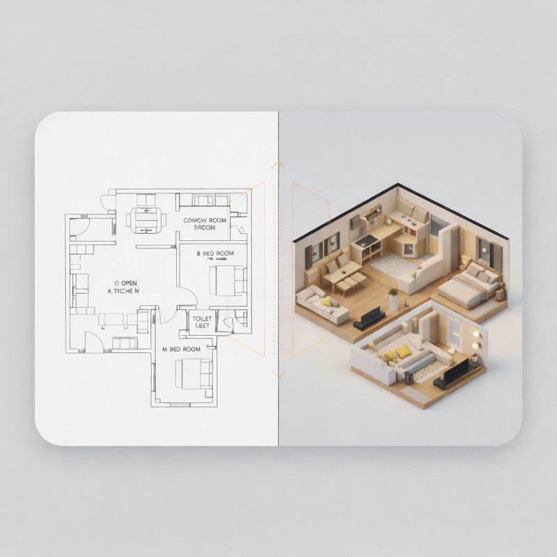 Turn flat sketches into living spaces in seconds. Upload any floor plan image or PDF and watch our AI instantly construct a fully interactive 3D model.